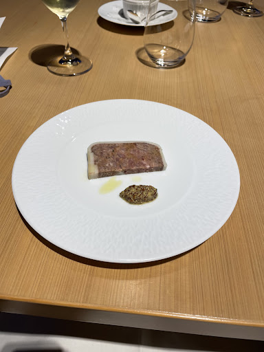 前菜のフォアグラとドライフルーツのガトー仕立てが非常に気に入りました。いちじくやナッツ、フォアグラの食感の違いが楽しく、固めに仕上げられていて口溶けが最高でした。