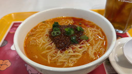 There, amid rows of delicate glazed pastries and sugar-dusted creations, sat a menu of savory entrées. Yes, savory. Tantan noodles. Cold noodles with chicken and onion. Soba. Even egg fried rice. I had to double-take. At a donut shop? In a mall?