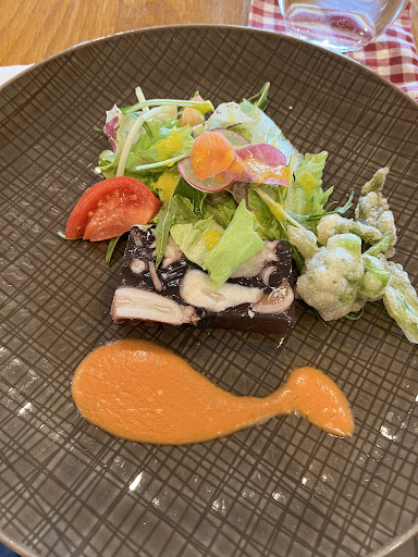 スープは火傷しそうなくらい熱くて、こういったレストランでは適温が多いのに珍しく感じました。寒い時期なのであえての配慮なのかもしれません。 口当たりが若干ボソついたものの、ポルチーニの旨味に浸ってうっとりします。