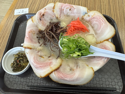 麺は王道な細麺ですが、基本が柔らかめなのか。 なので替え玉はかためで注文、これでちょうどよかったです。 替え玉にもチャーシュー1枚ついてきたのは嬉しかったです😊 チャーシューは食べやす厚み、脂っこくもなく何枚でも食べれそうです。 あとキクラゲ結構多めでよかった。