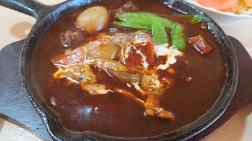 Read more昼食で利用しました。 13時30分頃入店したところ、混雑時を避けられたのかとても落ち着いて食事ができました。(※14時くらいが昼のラストオーダーっぽいです ビーフシチュー(1,750円)を頼みました。お値段高めと思いきや、スキレットの中には柔らかな牛肉がゴロゴロ入っており、味も美味しくとても満足できましたし、男性もお腹いっぱいになれると思います。主食はパンかライス選べます。 また近く...