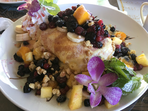The vibe is okay, but I loved the pancake. I ordered the macadamia nut pancake, and it was huge—very fluffy and tasty, just to my liking. It's sweet enough to make you happy. The outdoor area is pretty nice with a sea view, but it's designated for smoking. In the end, we asked to sit indoors since neither...