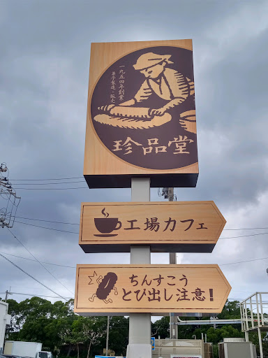 来週から福岡出張です。知人や友達が居るので滞在中に会う予定。沖縄らしくて、重くなくて、手頃なお土産って『ちんすこう』なんですけど、ファッションキャンディーのコーティングはこの時期溶ける可能性大なんですよね。 普通の『ちんすこう』じゃあ芸が無いので、ここは『珈琲に合う』ちんすこうを販売している糸満の珍品堂で購入しましょう(笑) ということで西崎の工場地帯にある珍品堂工場内のカフェに向かいました(観光客に人気の糸満漁民食堂の近くにあります)。 そこで目的の『珈琲に合う』ちんすこうをサイズ別(一人用、会社用)を選んでいると、なんと、もっと変わった ワインに合うちんすこう がありました。