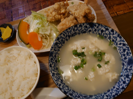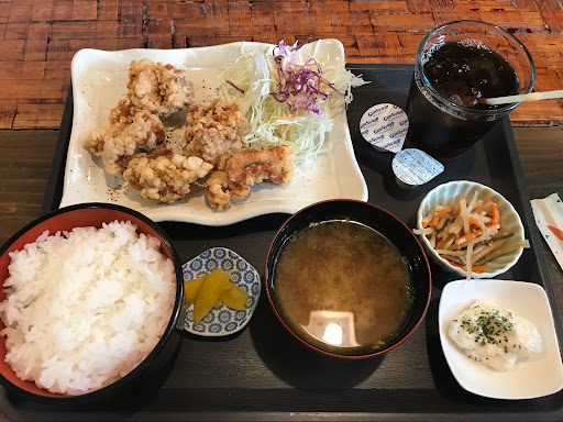 初訪問しました。 ご夫婦でやってるのかな? 奥様?とても愛想がよくて、とても好感もてます🍀 唐揚げ専門のお店でしたので、ランチの定食ではなく、やはり唐揚げ定食にしました。 味は、出汁と塩が選べます。が、奥様がハーフ&ハーフもできますとのこと。迷わず、ハーフ&ハーフにしました。680円❗ 10分程で登場~🐤 ころもサクサク、お肉ジューシーで美味しい。ふと、メニューを見るとニンニク風味の定食もある~ 次回はこれだ(^^) しかし欲を言えば、小鉢が2つ付いてまして、ひじきの煮物、モヤシのゴマ油炒め?両方とも塩系の味なので、唐揚げとは相性どうかな? 酢の物でいかがでしょうか(^^) 個人の感想です。 ...