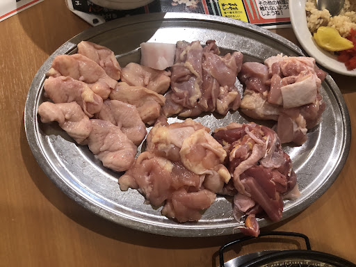 ほとんどの焼き肉屋がタレ漬けの肉を提供しているが、 こちらは全く味の付いていない鳥肉がうまい!