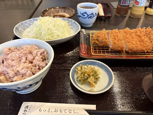 Read moreДуже гарний заклад, це мережа ресторанів, меню можна знайти на сайті, для всіх ресторанів воно однакове. Їжа коштує приблизно 950-1800¥, за сет. Головна фішка цих ресторанів - ти сам робиш соус для м'яса, товчеш кунжут в ступці, додаєш соуси туди. А також те, що рис, салат і місо суп можна безлімітно замовляти знову, це входить в ціну. Обслуговування добре, привітне, але розмовляють тільки японською. Прийшли в обід, були черги на вхід, чекали всередині,...