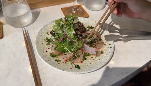 でも、今回のMVPはやっぱりデザート! クリームたっぷりの一皿で、まるでドリアンみたいに濃厚。でもその中には、ひんやり冷えたシャキシャキの柿が隠れてて、食感が最高! 飲み物は地元産の柑橘ソーダをチョイス。けど……柑橘感ゼロ(笑)。
