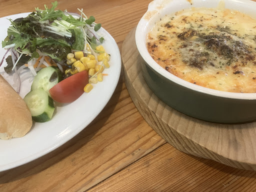 Read moreランチセットのチキンカツサンドとハンバーググラタンをいただきました。 クチコミどおりチキンカツサンドは揚げたてサクサク、パンからはみ出すボリューム。 ハーブソース?も風味良く美味しいです。 ハンバーググラタンはトマトソースが良いアクセントで最後まで美味しく食べ応えありました。 こんなに美味しいグラタンは久しぶり。 食べ過ぎて苦しいお腹をさすりながら大満足しました。 チキンカツサンド+グラタンのセットは女性にはボリューミーなので皆は気を付けてね。 パスタも評判良さそうなので次回チャレンジし...