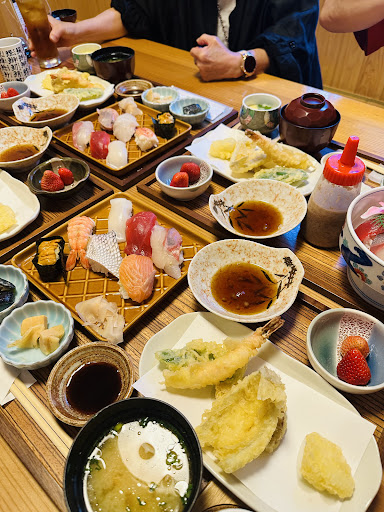 Read more口コミが良かったので伺いました! 人気なお店ですが、予約せず直接行ったので40〜50分?は待ったと思います。 お店の中に入って、店員さんに人数を伝えて外で待ちます。 外で待つので、夏は暑く、雨の日は傘?か車待機などになると思います。 駐車場はお店の前と、数十メートル離れた第2駐車場があります。 メニューは、お寿司のメニュー、海鮮丼のメニューがあり、海鮮丼の食べ比べや手毬寿司などの人気メニューは数に限りがあるので早く行かないと売り切れてしまいます。 今回私は「握り寿司御膳」をいただきましたが、天ぷらもついており食べ応えがあり、お魚も新鮮で美味しかったです! 待ち時間は長いですが、私は近くの海や川沿いのお花を見たり撮影しながら過ごしたので、待つのも苦ではなかったです(^^) 近くに寄った際は...