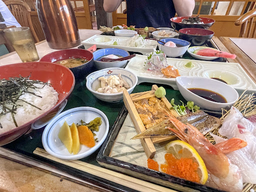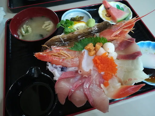 Read more平日の11時15分ごろ来店。 お店の外観見てすぐ「何かビミョー…」と嫌な予感。。整理整頓されてない感じとか入口周りの雑然とした雰囲気。 お店に入ると薄暗いし素っ気ない接客。メニュー表みても美味しそうな雰囲気が感じられず、店の方はテーブルにポットと急須、湯飲みを置いていかれるだけ。 客はうちだけだったので注文して15分くらいで海鮮丼到着。 見た目はまぁまぁ。刺身のネタは悪くないけど、しょう油が美味しくなかったので台無しでした。サイドメニューも微妙なものでした。 食後から数時間、口の中が変な感じで気持ち悪かったです。