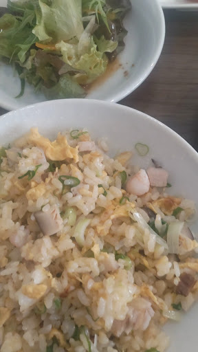 そして。+300円の炒飯。 好みもあるかもしれませんが、ベターっと したもので残念でした。 椎茸入り?なのか食感がふにゃふにゃした物が入ってあり、好みではありませんでした。 調味にバラつきがあり、ごはんが白い部分もあったのも驚きました。
