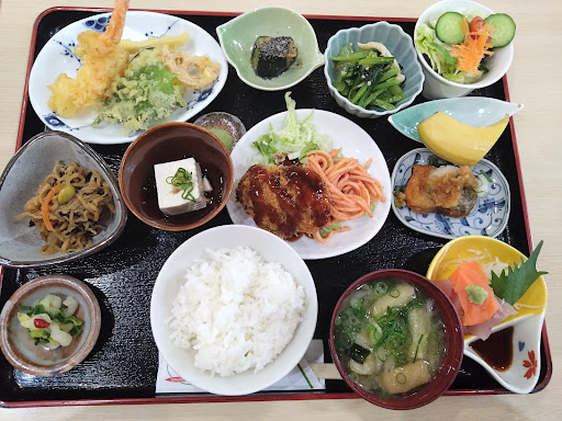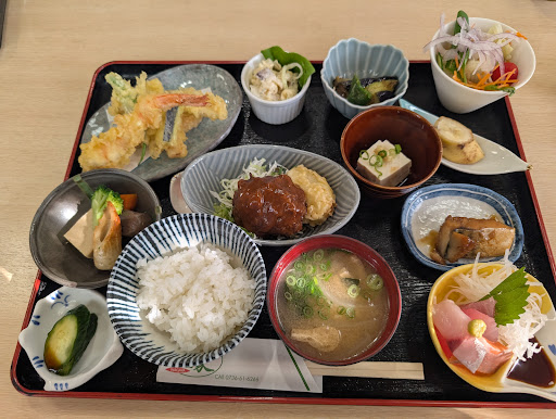 Read more店前に専用駐車場あり 前日に12時〜の予約をして行きました 12時に到着して(すでにお客さんが来ていた)食事が出てきたのは12時20分頃、数種類のおかずがずらり😃写真撮ったりして、ゆっくり味わって食べていたら😮12時45分 まだ天麩羅他食べてない、やばい、急いで食べて5分前に退散! ご飯おかわり出来ます。 途中、店員さんが持ち帰りが出来る ちらし寿司、おはぎ、よもぎ餅、などはどうですか?と聞いてくれる、思わず注文しました😋 ランチの種類は1つ、お茶付。 プラスする飲み物はありませんでした(あっても時間足らない)