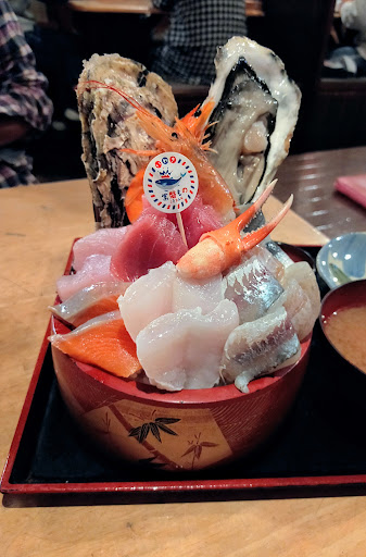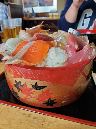 星が低い理由は、提供時間と接客とメニュー表が星を低くしてしまった理由です。 提供時間は、その時のお客様の人数、注文の内容によっては遅くなるとは重々承知しています。が、揚げ物メニュー3つオーダー、海鮮丼4つ(その内2個は自分達)で20分オーバーは、ちょっと遅いとは思います。 接客は、これは入店からお粗末。入ってすぐにフロアの方が、まだ来るの?って感じの顔。片付けが追いついてなかったのか常連さんが手伝う始末。料理の提供時も、お待たせしましたの一言も無い。接客の基本用語も男の人しか言ってないんじゃないかな?って感じの接客でした。 メニュー表は、文字だけで写真とかが無いからどんな感じなのか、全くわからないし、聞こうと思っても仏頂面の人と困惑してる人に聞ける訳無いから、周りを見て今回、海鮮丼になりました。 (あくまで個人的な意見です)
