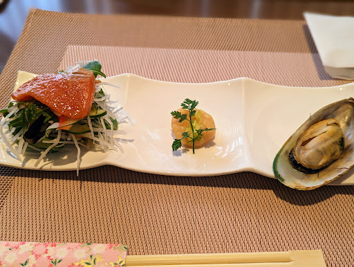 初めての来店です。 のどかな田園地帯にある、外見は普通の住宅?と思わせるようなお店です。 今日は和牛ランプのステーキコースを頂きました。 前菜3種にはサラダとホタテ??とカキ。 本日の季節のスープはピンク色にハートが描かれていてとても可愛いけれど、どんな味?と思いながら口に運ぶと、なんと苺の冷製スープ!いちごミルクのような感じですが、ちゃんとスープになっている!驚きと美味しさにビックリしました。 メインの和牛ステーキはボリュームがあり、柔らかくてこれまた美味しい!それにカットされていたので食べやすかったです。 最後はフルーツが添えられたバニラアイスとクレームブリュレ、メロンのデザート盛り合わせとコーヒー。 全部が美味しくてお...