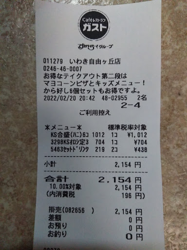 店に入って1時間でこれ? なめてんのかな? ガストってどこもこのレベルか? いわきだけこのレベルか?