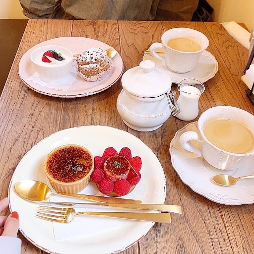 Read more何度もティータイムをしにお邪魔しています* ケーキはテイクアウト、イートイン両方できます。イートインの場合は飲み物も注文できて、わたしのおすすめはキャラメルミルクティーです!アールグレイの紅茶を使っているのか、とても風味が良く、甘過ぎずケーキと相性抜群です◎ ケーキはお洒落なお皿に乗せて出してくれます!2つ注文すると写真映えしますし、なにより美味しいのでペロリといけちゃいます! こちらの苺タルトが絶品で、カスタードクリームが口溶けなめらか、上品なお味!! クレームブリュレも表面パリパリ、中とろっとろの絶品ですし、チョコ系のケーキもハズレなし!!!正直何を食べても美味しい!! イートインスペースは4組ほどテーブルセットがあった気がします! いつも午後に行くと売り切れ続出してるので、早めの時間...