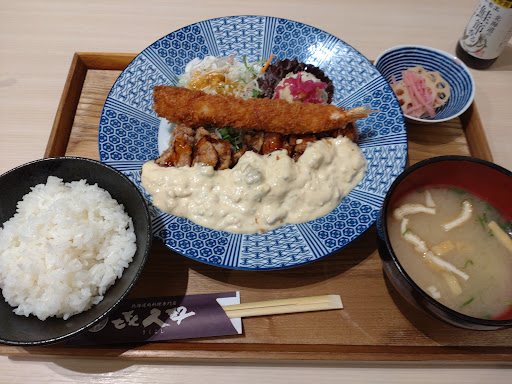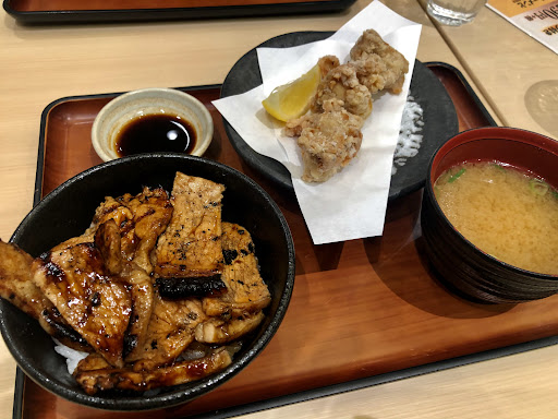 Read more2021/3訪問 所用でいわきへ。 10時頃に用事が済んだので、イオン内をウロウロ。 お昼にはまだ時間があったので、車で移動しながらお昼を食べる所を探しに。 平方面まで行くも、結局めぼしいお店は見つからず、イオンに戻ってきました。 4階の小名浜ダイニングなるエリアに行き、最初は利久の牛タンかなと思っていましたが、利久は何度も食べているので豚丼がいいと主人が。 入店すると、若い女性が来店は初めてか聞いてきたので、初めてですと。 タッチパネルを持ち、惣菜バイキングはこちらで・・・と何やら操作してから画面を見せてくれました。 その後最初の画面に戻し、ご注文はこちらからお願いしますと。 あのさぁ、操作後の画面を見せて「惣菜バイキングは・・・」と言われても、こう言うの苦手な人は分からないんじゃないの? 我が家は私がハイテク担当なので、こう言う系は困らないけど、困る人は確実に居るでしょうに。 と思いながら、注文は主人が豚重御膳の冷たい蕎麦。 私は豚丼の辛味だれ。 お肉は、お肉自体に味や香りがある感じはしませんでした。 まぁ、味は普通の豚丼です。 辛味の方は、辛いの苦手な人はやめた方がいいかな。 思った...