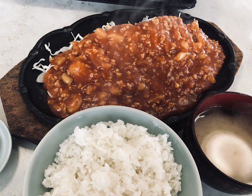 Read more再訪:チリ定食を注文(^O^)!1200円! チキンカツにほんのり辛いミートソースが かかってる一品♪ カツの衣はパリパリ感があります!