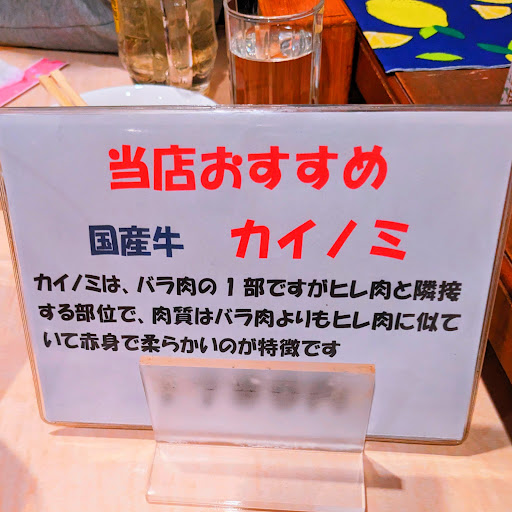Read more住宅街の中にありました。 お店の中は落ち着いた雰囲気で落ち着いて静かに食事できてとても良かったです カルビ、ハラミ、ミノどれもとても美味しかったです。 お肉の種類ごとにレモン汁だったり、わさびだったり丁寧にどれで食べるのが良いかを教えてくれるので大満足でした ミノがめっちゃ美味しかった 自宅の近くにこんな美味しいお店があったら毎日でも通いたくなるほどの美味しさでした お値段もリーズナブルでとてもお財布に優しかったです。 必ずまた行って、色んなメニューをたの...