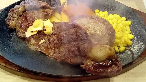 開店して2~3ヶ月の頃行きました。 4人で行ったと記憶しています。 ステーキハウスなので当然焼き方は自分はレアが好きなのでそれで頼みましたが、口に入れてビックリしました。 お肉が冷たいんです!! 他の人はミディアムレアでしたがそれも冷たい(レアほどではありませんが)! 筋も噛み切れません。 自分が間違っているのでしょうか? 通常レアは、ゆっくりとお肉の中まで熱を入れ、赤く仕上げる物だとおもっておりました。 また、ライス、スープの器もプラスチック! 「犬の食器みたい」と言っていました。 自分たちの席ではなかったのですが、入口、待合席から丸見えの席もありました。 換気も悪く店内は、煙が充満しています。