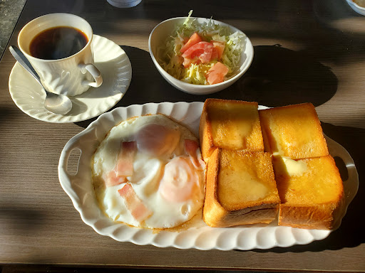 以前のレビュー↓ こぢんまりとしたお店でした。 ミックスグリルサンドウィッチには注意点があります。中身が①トマト玉子キュウリのもの2つと、②ハム玉子キュウリのもの2つが①①②②のようにお皿に乗っていたのですが、2種類の見た目の違いが意識していないと分かりづらいので、2人で食べる場合、片側の人は①①を食べ、向かい側の人は②②を食べ、食べ終わってから、1種類しか食べてネェ!?という事になる恐れがあるのです。 この文章を読んだ人なら大丈夫だと思いますが、身内の者は2回この罠にかかりました。私もハムの方しか食べてなくて後で気付きました。(笑) どんなメニューなのかよく観察していないとこうなります。場合によっては別の並び方でお皿に乗っているかもしれません。予め人数分に分けてから食べるのが良いと思います。 サンドウィッチ1つが大きいので、2人で食べるか、食べきれない分は持ち帰りにしてもらう事になると思います。身内の者が以前残して帰った人を見たそうですが、とてももったいないので、持ち帰ってほしいです。 かなりボリュームがある事を覚悟して行きましょう。 テイクアウトしたベーコントーストも厚みがすごかったです。メニュー表に写真があるエッグトーストと見た目が同じタイプ(グリルサンドのようにホットサンドメーカーで具を包み込んで圧縮したようなタイプではなく、分厚いトーストでグッと挟んである感じのタイプ)...