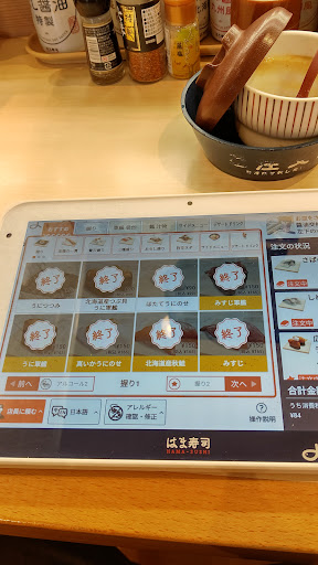 そのテーブルの注文がそこそこ回って来た後でウチや他のテーブルのも回って来た。 5人で来店したが1時間ほどいて10皿程しか回して貰えず、大量注文しているテーブルの事があって(よく食うなぁ…などと思いつつ)ここではまともに食事が出来ないと判断して最後に注文した皿が届くのを辛抱強く待ってその寿司を食べて退店した。