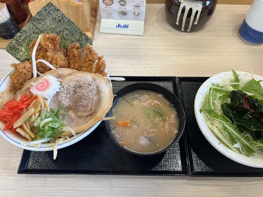 Read more食べる前から食べる気を失くす演出が盛りだくさん。愛想は悪くないが、はじめに持ってきたお茶のポットは中身が入っていないものを持ってくる(詳しく言えば二人で入店したのに、二人分の急須に注げる分のお茶すら入っていないお茶のポット)、卓上に置いてある漬け物の壺は空。割り箸はソースで汚れているものが何本かある。客を迎える準備が出来ていない店。後から少しご年配の店員さんが顔を出したときに、これで雰囲気が変わるかと思ったら客がいるホールで店員に向かって"やっほー、やっほー"という親しみやすさ全開の挨拶を繰り出してくる。あぁもう上の人からしてこういう雰囲気ならば、下の人もこういう働き方をしているのだと納得できた。ただ、客一人一人に対しての接客は明るく爽やかだった。 新しいこともあって、テーブルや店内は綺麗。食事も安価で、豚カツも猫舌の私でもすぐに食べられるくらいよく冷めていたので...