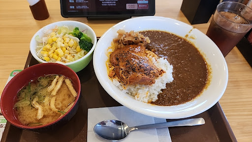 カレーは飲み物です。というのが分かるくらい具などなしのカレールゥの流し込み。 牛丼は普通盛りなのに、 汁は一切なしでカピカピに乾いた肉が3枚というべきか3切れだけでした。 もう白米丸見え〜! ボッタクリでしょ(笑)