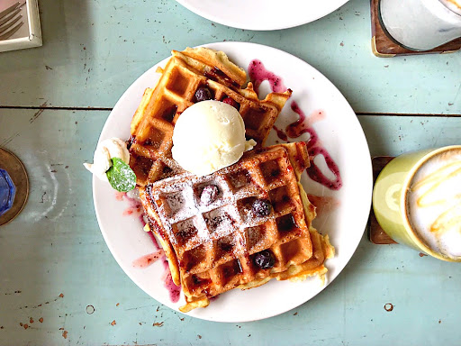 ワッフルは外側はサクサクなのに中はもっちりしていてすごく美味しかったのですが、なんせ思っていたより大きすぎて... 正直ハーフで良かったと思いました笑 また写真のアイスクリームは既にのっているので特に追加で注文はしなくて大丈夫です。