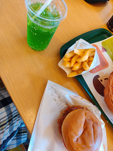Read moreThe burgers I had were pretty good (yasai burger and spicey burger I think). The staff were nice, all smiles, and were patient with my mastery of the three Japanese words I know (yes, one, and thank you). They even brought out an English menu. Clean interior with ample seating. Burgers were a little small, but probably not much different than most fast food places. They were yummy and messy, but they put the burger in a waxy paper, so you don't get tasty...