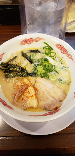 Gem in the middle of downtown Iwakuni. 100 yen parking straight across. Got there shortly after 6, and thankfully no one was there so we got good seating (about 6 counter seats and 2 tables on tatami mats that can sit 4 people). It was our first time, but the person (who I assume is the owner since he was a one-many army) was awesome! Provided us an english menu and gave us the popular recommendations. We got our food within 10 minutes, I was speechless! It was also amazing! Like really freakin good! I've travelled a lot in Japan and as far as tonkotsu ramen, this is the 2nd time I've been amazed that a local business in Iwakuni is serving something this amazing and in my 2 years of being here, never heard of it until recently. Please go here, the atmosphere may be different than what you see in other shops, but the customer service won't disappoint, the food definitely won't disappoint, and your wallet will be glad, the bill for my family only came out to 1800 Yen!...
