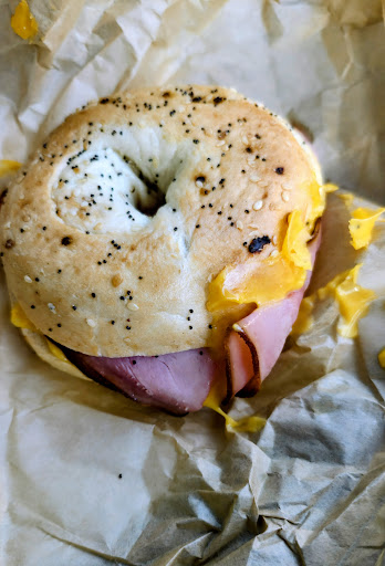 Maybe the worst bagel sandwich I have ever had. Ordered a ham and cheese sandwich on and everything bagel. Received some ham and a “slice”? of yellow caulking between a bagel with five poppyseeds and 8-10 sesame seeds on the top. Nothing else. No butter, ketchup, hot sauce, mayonnaise, or anything else. Not on the sandwich, not on the side. The ham and cheese was almost definitely the same ham and cheese served on US public school breakfast sandwiches in the 90’s. The employees were good though. Upbeat. Nice. Seemed to enjoy their job. Place is clean. Coffee is meh. Pastries look good (did...