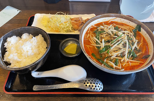 メニューは通常とランチタイムの何方も注文可能の様で、私は台湾風味噌ラーメンセットを発注。おかずの選択可能で唐揚げにして頂きました。