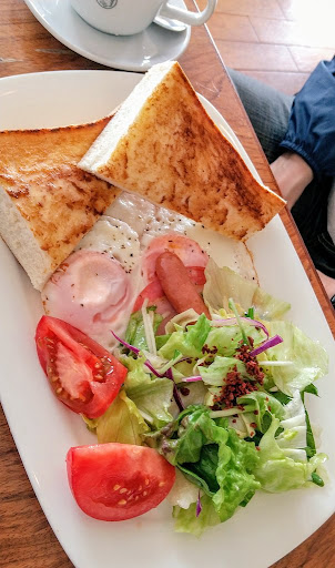 目玉焼きのセットは、トーストがものすごくモチモチで美味しくて、サラダのドレッシングもとても好みで、目玉焼きも2つ付いていてボリュームもありすごく良かった。