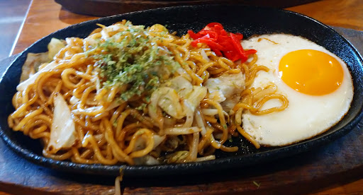 「鉄板焼そばセット」の配膳 使い込まれた食器でなんだかホッとする