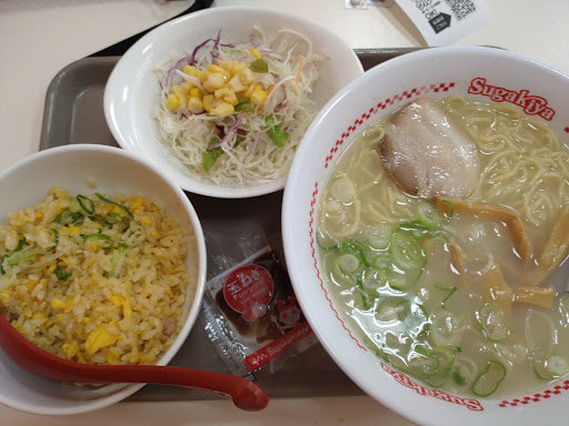 Read moreなかなか関東では馴染みの無いスガキヤさん。 一度食べてみたくて、伺ってみました。 老若男女、お客様が来ておりました。 ラーメンのサラダ・チャーハンセット(770円)を注文。 いたって普通、東海のソールフードでした。 チャーハンは少し微妙でした。 でも、安いですね😀 また機会があったら来てみましょう。 ラーメン以外のメニューも人気みたいでした😀 それとスプーンとフォークが一緒にな...