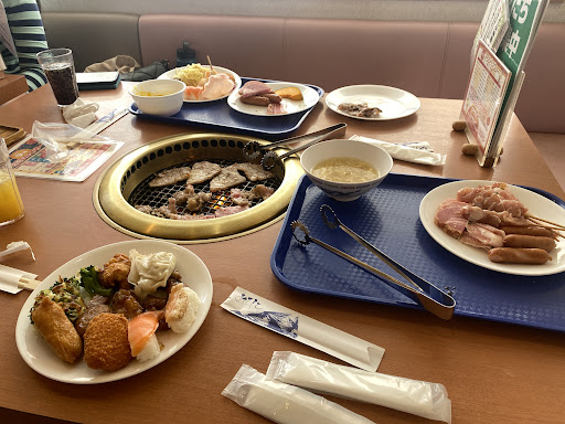 Read more総合的に見て、コスパもタイパも良いお店! 焼肉・洋食・和食・フルーツ・スイーツなど、実はよく見るとけっこう種類が豊富。飽きることなく、全て食べきれない?!ような品揃えで満足。 例えば、牛肉だけでも5~6種類以上。プルコギなどの珍しい品揃えもある。もちろん豚肉(5~6種類以上?)・ジンギスカン・レバーなどもある。寿司は「詰め合わせでの提供」だが、割と柔軟に補充してくれるため、欠品の心配はあまりない。鮮度もOK! 毎日、クロワッサンorアップルパイorオールドファッションドーナツのタイムサービスがある様子。どれに当たるかはその日のお楽しみ。 平日ランチでも、家族連れや学生さんの小グループでの来店が見られ、客席は4~5割ほど埋まるなど、割と健闘?!していて、老若男女問わず地元客から支持されている様子。ディナーや土日祝ではもっと賑わっているかもしれない。 客席は、簡易的ながらパーテーションやスクリーンなどで仕切られていて、椅子席も小上がり席も快適。隣卓を気にせずに食事を楽しめる。 焼肉で焦げ付いてしまった網は何度でも(もちろん無料で)交換可能で、実際に多くの客が気兼ねなく交換をリクエストしていた。 Twitterでイベントの告知などもしており、フォローすると(毎週木曜限定ながら)100円値引!の特典なども実施されていたことがある様子。 清潔な店内では落ち着いた雰囲気でゆっくり食事を楽しむことができる。 さすがにコロナ禍の間は休業する日などもあったようだが、今はかなり回復してきている印象。このご時世なので値上げはやむを得ず、全体的に満足度が高いので許容できる。もっと賑わっても良さそうな、地元客から愛され...