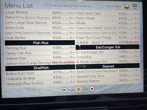 Visited on Feb 2024, weekday evening (Winter). No waiting time and lots of seats, but the good thing is that the food is served almost instantaneously as the sushi is prepared very quickly. Almost exclusively sells sushi, and you can make order via the tablet in various other languages such as English, Chinese, Korean. Sushi is actually pretty good, and selection is huge. Prices are quite average, not...