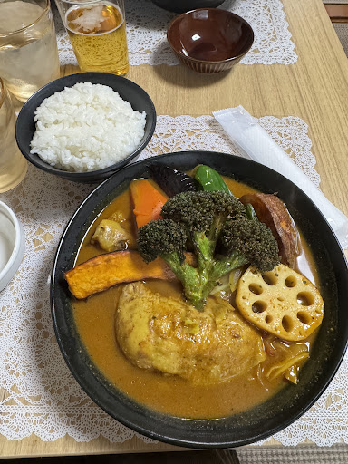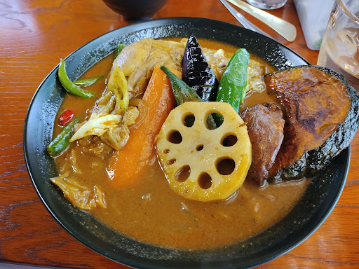 Read moreスープカレーの美味しいお店でした! スープやトッピングの種類が多く自分好みにアレンジ出来るのでとても助かります! 夫婦で切り盛りしてるらしく提供スピードが早いわけではないので時間と気持ちに余裕がある時に行くと実家に帰ったような居心地のいい雰囲気でご飯が頂けます! 他のお客様でご飯の大盛りを頼んで残す方が居るらしく、大盛りを頼んだら「多いですよ」と心配頂いたので1つ下のご飯を注文、結果同じ量をおかわりして完食しました! ご飯の目安のグラムが書かれてる店なので注文する前に普段自分が何グラム食べ切れるのか把握してから行く事をおすすめします! 写真はチキン+やさいのエビマシマシスープです!これにご飯がMサイズ(200g)×2杯を頂きました! トッピングによってスープ自体がボリューミーになるのでお腹空かせて...