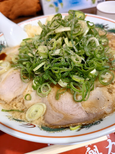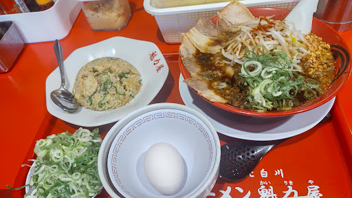 木曜のAM10時に入店! 店内は、お客さんゼロ 後輩からイマイチなレポートをもらっていたので不安な気持ち オーダーは限定品の【背脂スタミナラーメン超&半チャーハン】 店員の叔母様1人で調理をバタバタ 途中、客が来たが受付で暫く待ちぼうけ 1人バタバタした中で、ちゃんとした料理ができるのか益々、不安な気持ちで10分後に着丼!(画像) 魁力屋はサービスで青ネギ、たくあんが取り放題がナイス