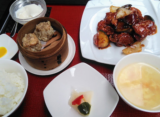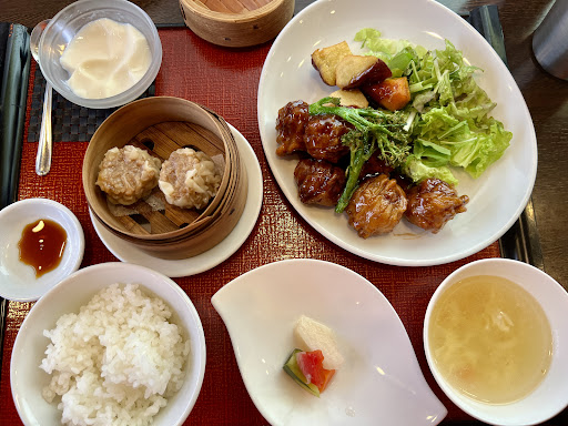 外観はやや高級感のある中華料理店風、店内はブラウンの木調テーブルで統一されたシックなイメージ。 平日のランチで訪問、場所柄か比較的閑散としていたが、サラリーマンの利用も多いようだ。 日替わりランチのメイン料理「鳥の甘酢炒め」をオーダー、日替わりランチはメイン以外に天津、スープ、漬物、デザートが付いて900円と比較的リーズナブル。今回はこれに200円プラスしてラーメンランチに。