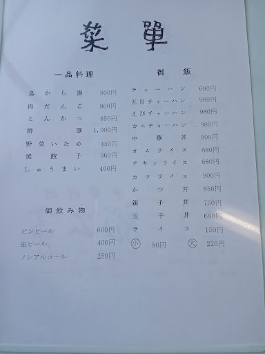 サンマーメンは安定の美味しさです。 大好きな町中華店です。 レトロな外観と、レトロな内装がたまりません。 今回は広東ラーメンとチャーハンを頂きました。 ラーメンの上の餡は、エビや豚肉に薄衣をつけて揚げてあり、キャベツやニンジンなどと一緒に炒めて八宝菜な仕上がりで絶妙な味付けです。 スープは醤油が香る懐かし系です。 あっさりし過ぎず、こってりし過ぎない丁度いい感じです。 麺は細めのストレートで、嫌味なく、程よくスープと絡んでスルッといけます。 チャーハンは逆に凄くシンプルで、具材は卵、叉焼、ネギだけです。 味付けは塩、コショウ、ほんのちょっと砂糖が入っているのではないかと思います。 しつこくなく、コショウの香りがたった食べやすい一品です。 五目チャーハンになると、椎茸等が入って、また旨味が増します。 広東料理が得意分野なので、餡掛け系は間違いナシです。 近隣には出前もしてくれますので、このご時世には嬉しいですね。 店内に座敷席がないので、小さなお子様を連れてのお食事には、少し不向きかも知れません。