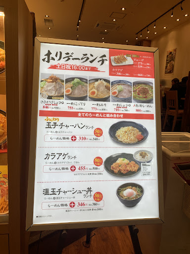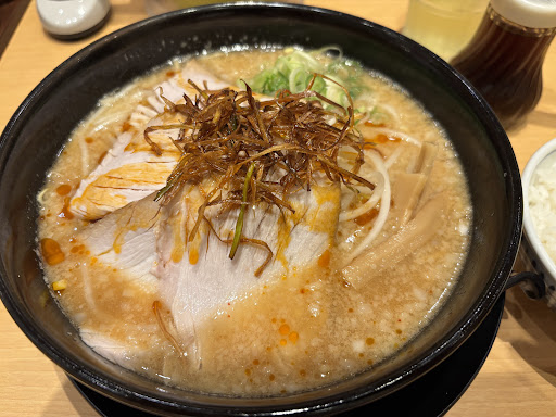 Read moreららぽーとの2階にあり、一つのお店として構えており、店内はラーメン屋としては広々としています。 平日の12:40頃に訪れました。店員さんの接客が丁寧でとてもいいです。 【さきがけしょうゆ(中太麺)】提供までは3分ほどで早かったです。スープは豚骨系でニンニク、背脂とこってりで美味しいです。麺は太麺と中太麺が選べます。チャーシュー、もやし、焦がしネギが乗っていて美味しかったです。柚子昆布酢が付いていて味変できるのもいいです。 お昼は単品ラーメンにライスが無料で付きます。 さらにららぽーとアプリで大盛り(¥154)無料クーポンがありお得にお腹いっぱい食...