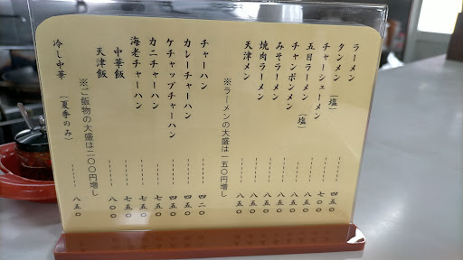 2024 07/20 昼食 まずメニューを見てビックリ ラーメン480円 チャーハン450円 やはり町中華は こうでなくっちゃ。