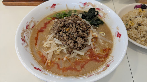 金曜のお昼に訪問。外観は昔ながらの街中華の佇まいながら、綺麗な暖簾がかかっていることで営業しているのが辛うじて分かる(失礼)。お昼時は常に駐車場が満車状態で、人気のほどが伺えます。 店内はカウンターが5席程に四人掛けのテーブルが3卓。 人となりの良さそうな大将に促されてカウンターに着席し、目当てのごまみそ担々麺を半チャーハンセットで口頭注文。
