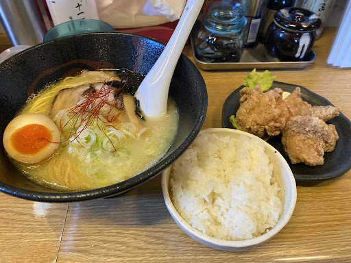 Read more平日12時過ぎに訪れました。カウンター7席くらい、座敷4人3卓のこじんまりしたお店。夜は居酒屋をやっているようです。お客さんはカウンターに1人。2人で行きましたがカウンターに案内されました。 【濃厚鶏そば(醤油)】¥930を注文。5分で提供。スープはスッキリした中にも濃厚な鶏の出汁が効いたとても美味しいスープです。醤油感は強くないやさしい感じです。麺はストレート細麺。チャーシューは硬めのしっかりした感じですが美味しいです。味卵は半熟トロトロ。全体のバランスがとれていてとても美味しかったです。 【ランチセット(Aセット 唐揚げ、ライス小)】+¥420。こちらも5分で提供。唐揚げは味薄めですが、サクサクジューシーで美味しいです。味が薄ければテーブルにある沖縄の塩をかけて😊 アツアツなのでヤケド注意です。 【冬限定みそラーメン(薄味噌)+穂先めんま】¥1,200。5分で提供。薄味噌でもしっかりした味噌味です。少しピリ辛。具もたくさんで美味しいです。穂...