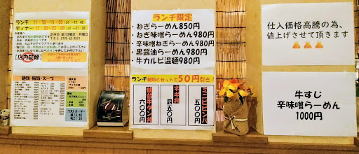 Read more初めて訪れました。 盛岡の帰り、沼宮内でちょっと道を外れようかなと、沼宮内の町へ その時、見つけたのがここ! 「ラーメン」の“のぼり”もありましたので、昼をここに決めました。 入店しすぐのカウンターに着きメニューを見てみると… ここは焼き肉屋。ラーメンじゃないよなぁ〜とすぐ目に着いた『牛カルビ温麺』が気になり注文。 ※注文したはいいが…入れ歯してねぇ〜!!前歯で噛み切れるかなぁ… でも、気になる 注文した『牛カルビ温麺』は、辛い麺 玉ねぎやキクラゲ、人参と小ぶりながら厚めの牛カルビなど。それと、ゆで卵のトッピング 麺は、冷麺と同じ麺でした。 ※平ったい麺じゃないの?と勝手に思っちゃった