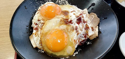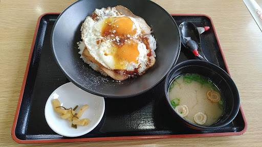 伊予灘SAで遅い昼食です。地元の料理が食べたいなー、と思い「今治焼豚玉子飯」を食券機で購入します。 魯肉飯みたいなものを想像していましたが、写真を見るとご飯の上に目玉焼きが2つ乗っかっています。 カウンターのおばさんに食券渡すと、ご飯ものは少し時間がかかります、とのことで約30分。本当に時間がかかります。 カウンターに取りに行くと、んー、生卵に近いものが2つ乗っています。レンゲで崩してご飯に混ぜると、ご飯には焼豚のタレはかかっていないので完全に卵がけご飯です。 事前に取っておいた魚のタレビン醤油をかけます。好みにより七味かコショウを振ってみるのも良いかもです。 残念なのは薄いチャーシューが3枚しか入ってません。味も薄いので醤油は絶対に必須です。そして味噌汁はものすごく甘いです。愛媛県民の味でしょうか。 ところで今治焼豚玉子飯ってこ...