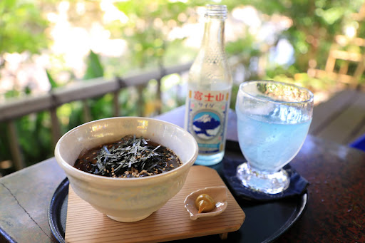 ひんやりと冷えたところてんは喉越し爽快で、桂川のせせらぎと共にいただけば、涼味が広がり、海苔や胡麻の風味が広がる酢醤油でさっぱりと楽しめるため、格別の美味しさです!