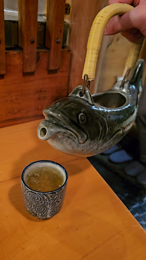 They also have a special hot sake that is made with a char-grilled fish within (and served in a fish-shaped pot) that has a very nice and unique umami flavour. The perfect thing to warm you up when the weather is cold.